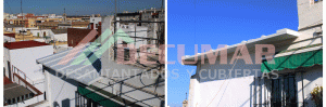 En pleno centro de sevilla, sustituimos una cubierta de uralita de 7 m2 e instalamos una nueva de panel sándwich.